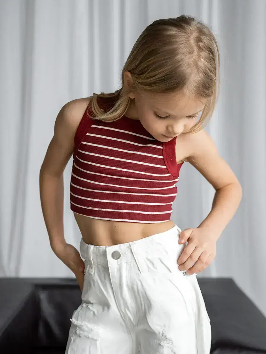 Топ для девочки в стиле y2k легко сочетается с шортами, юбками или брюками, создавая разнообразные образы. Красный укороченный топ в полоску для девочки станет универсальным и удобным дополнением гардероба вашей девочки. Кроп топ для девочки идеально подходит для теплых дней, активных игр и создания стильных образов в любое время.