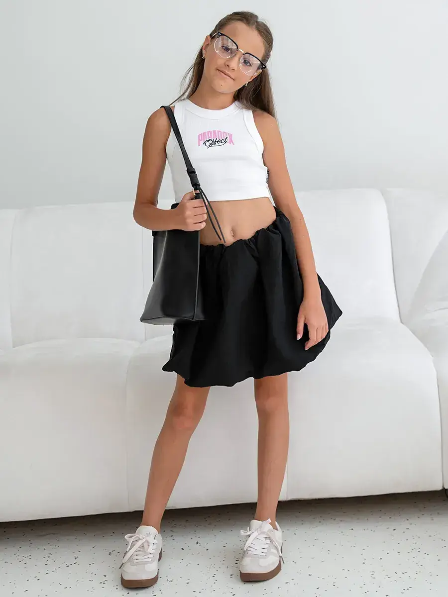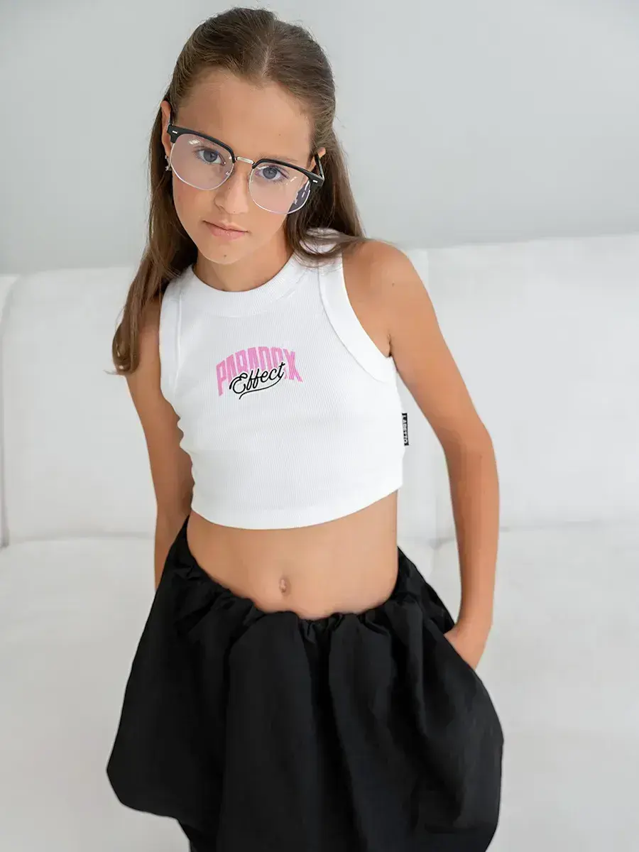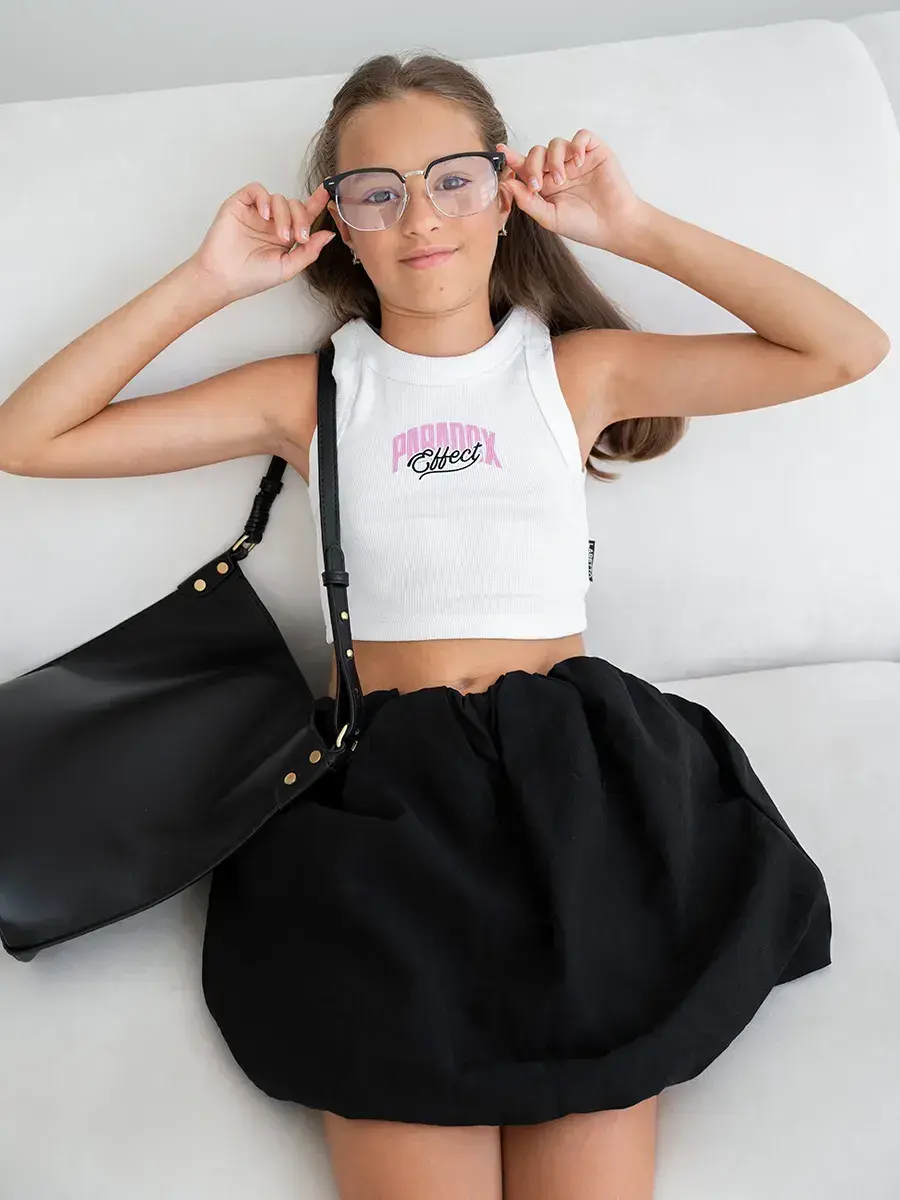 Топ для девочки в стиле y2k легко сочетается с шортами, юбками или брюками, создавая разнообразные образы. Укороченный топ для девочки станет универсальным и удобным дополнением гардероба вашей дочки. Он идеально подходит для теплых дней, активных игр и создания стильных образов в любое время.