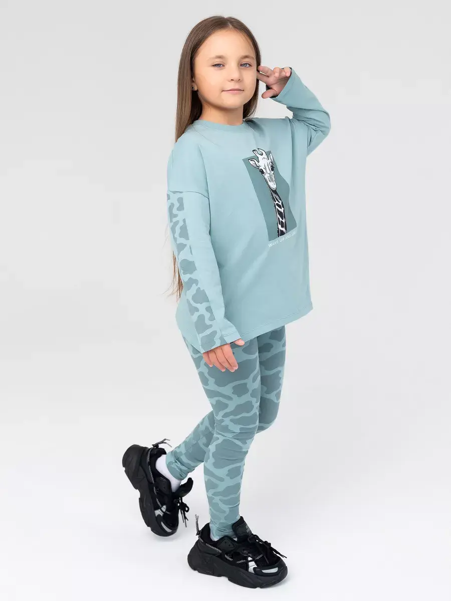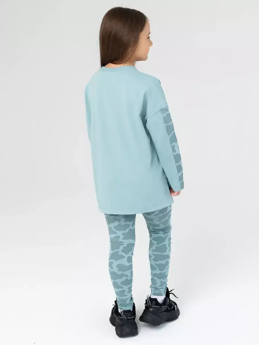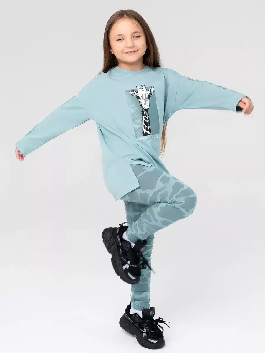 Лонг для девочки придает добавляет игривую нотку, а лосины обеспечивают максимальное удобство во время активных игр.