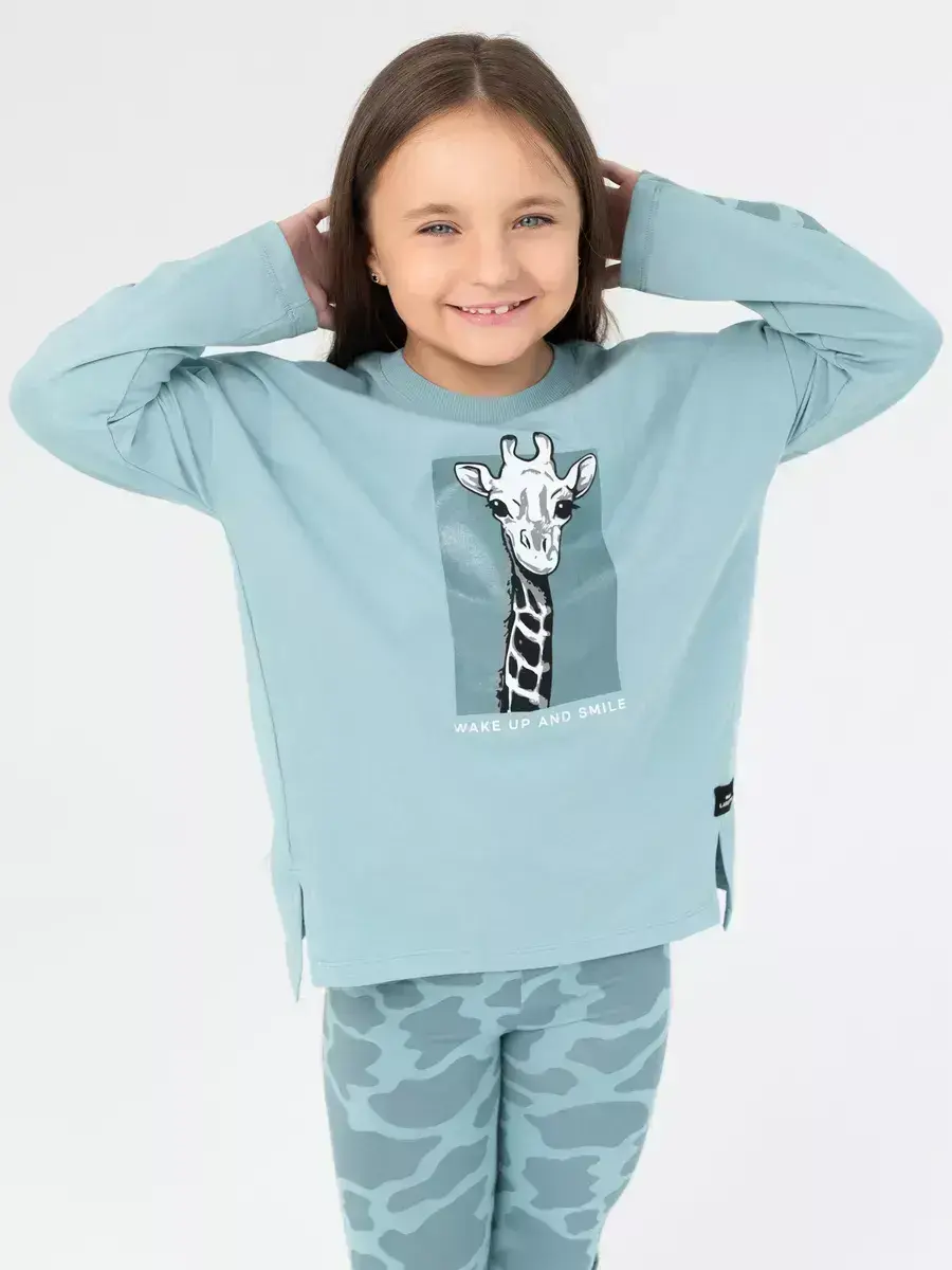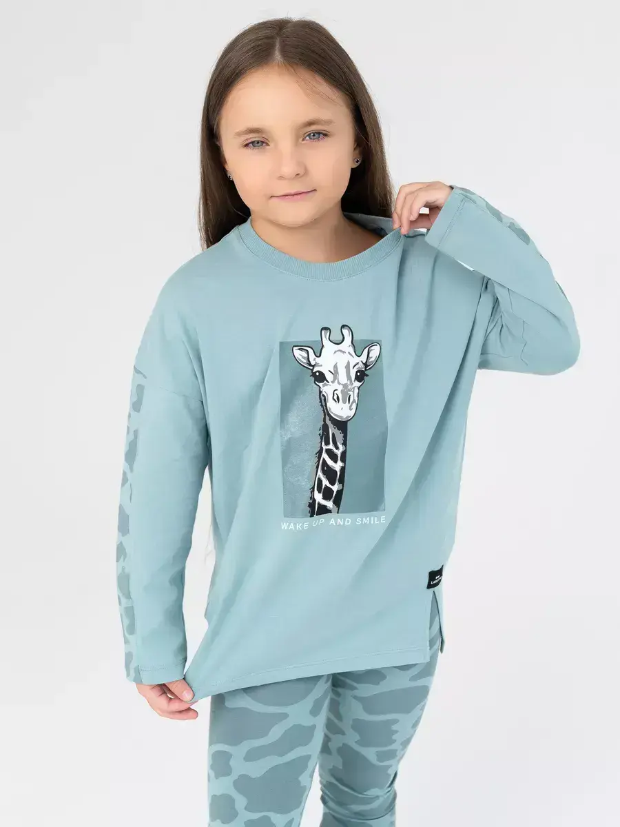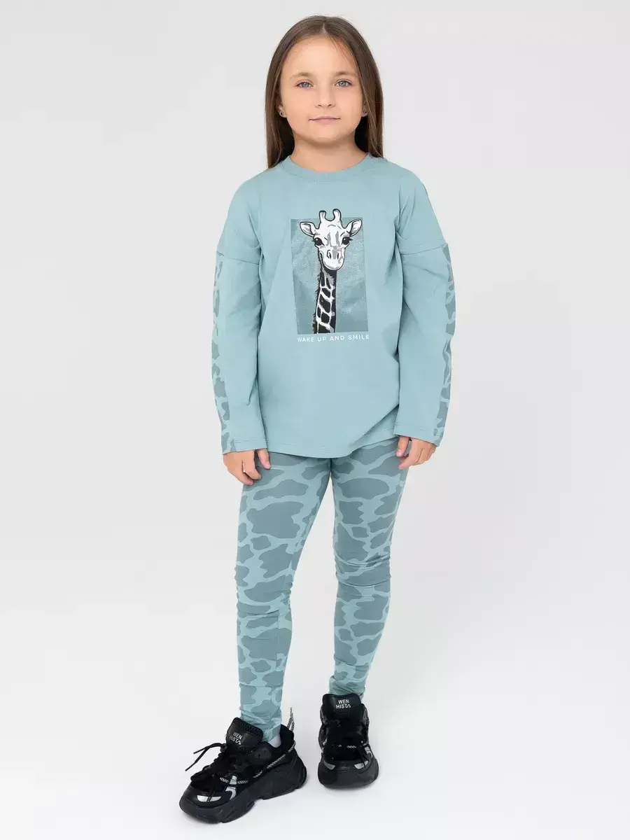 Лонг для девочки придает добавляет игривую нотку, а лосины обеспечивают максимальное удобство во время активных игр.