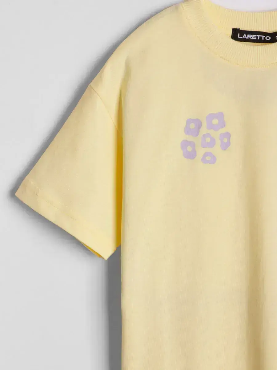 Трикотажная футболка оверсайз с принтом для девочек от LARETTO, идеальную для стильных и комфортных образов. Эта серая детская футболка с принтом в виде цветов выполнена в модном оверсайз крое, что обеспечивает свободу движений и комфорт в носке.