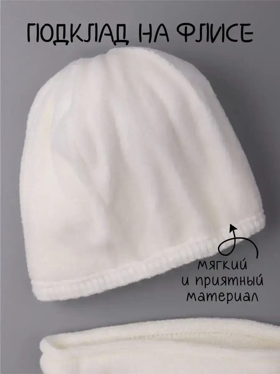 Детская зимняя вязаная шапочка станет отличным выбором для малышей в прохладное время года. Шапка подойдет как девочкам, так и мальчикам. Ее теплая структура обеспечивает защиту от ветра и холода, а вязка-лапша придает особый уют и комфорт. Черный помпон из искусственного меха и кожаная бирка добавят индивидуальности образу малыша! Для того, чтобы он принял нужную форму, его рекомендуется распушить при помощи фена. Мягкий флисовый подклад внутри шапочки обеспечивает дополнительное тепло, что делает носку особенно комфортной. Данный аксессуар идеально подходит на зимний период. Шапка для мальчика прекрасно сочетается с другими предметами гардероба, создавая стильный и законченный образ. Кроме того, модель дополнена детским снудом, который обеспечивает дополнительную защиту шеи от холодного воздуха. Снуд детский легко складывается гармошкой и надевается под капюшон верхней одежды. Он прекрасно тянется и не натирает шею ребенку благодаря качественной обработке краев. Шапка и снуд не только согреют вашего малыша в любую непогоду, но и подчеркивают индивидуальность его стиля. Вязаная шапка для девочки очень мягкая и эластичная, с помпоном изделие выглядит игриво и забавно, добавляя нотку озорства в повседневный наряд.